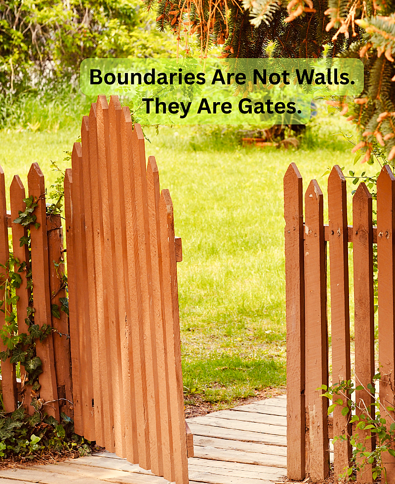Think of it instead as a gate.  A wall is rigid, isolating, and built from a place of fear. A gate, however, is intentional. It’s a mechanism of love and protection. It lets the good things in—your compassion, your presence, your care—and helps keep the bad things out, namely burnout, resentment, and exhaustion.